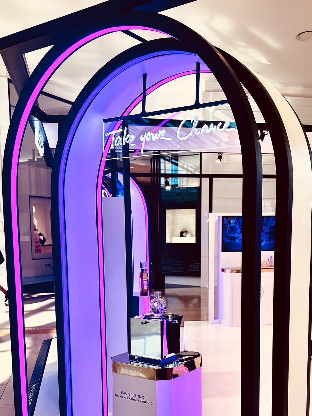 We had the pleasure of working with world famous luxury lifestyle and beauty brand Chanel, on their ‘Chanel Chance’ retail installation. Chanel came to us with inspo drawings, a plan, and a vision. We took it from there, building a fully custom setup that oozed the classic Chanel elegance and nailed every detail (because anything less just wouldn’t cut it).